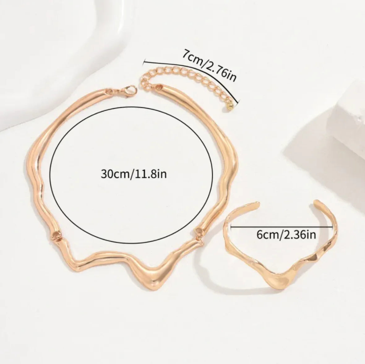 Featuring a sleek snake chain and sculptural twisted design, this elegant jewelry set blends modern sophistication with timeless appeal. It's the perfect statement piece for any occasion.